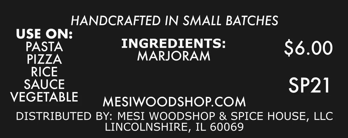 At MESI Woodshop and Spice House, we are committed to using only natural, wildcrafted spices, herbs, and botanicals. Our marjoram is handcrafted in small batches with care and precision, ensuring exceptional quality and flavor in every jar.