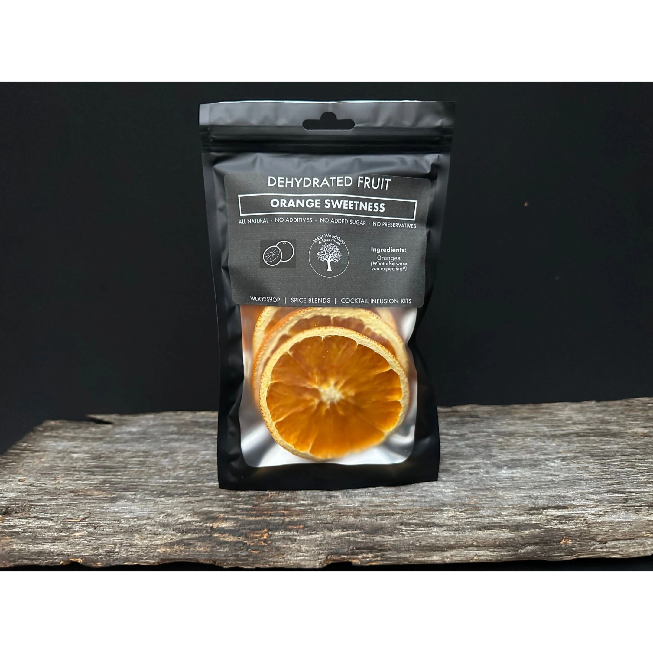 Ingredients: All natural, no additives, no preservatives, no artificial colors and no added sugar – 100 % Dehydrated Oranges