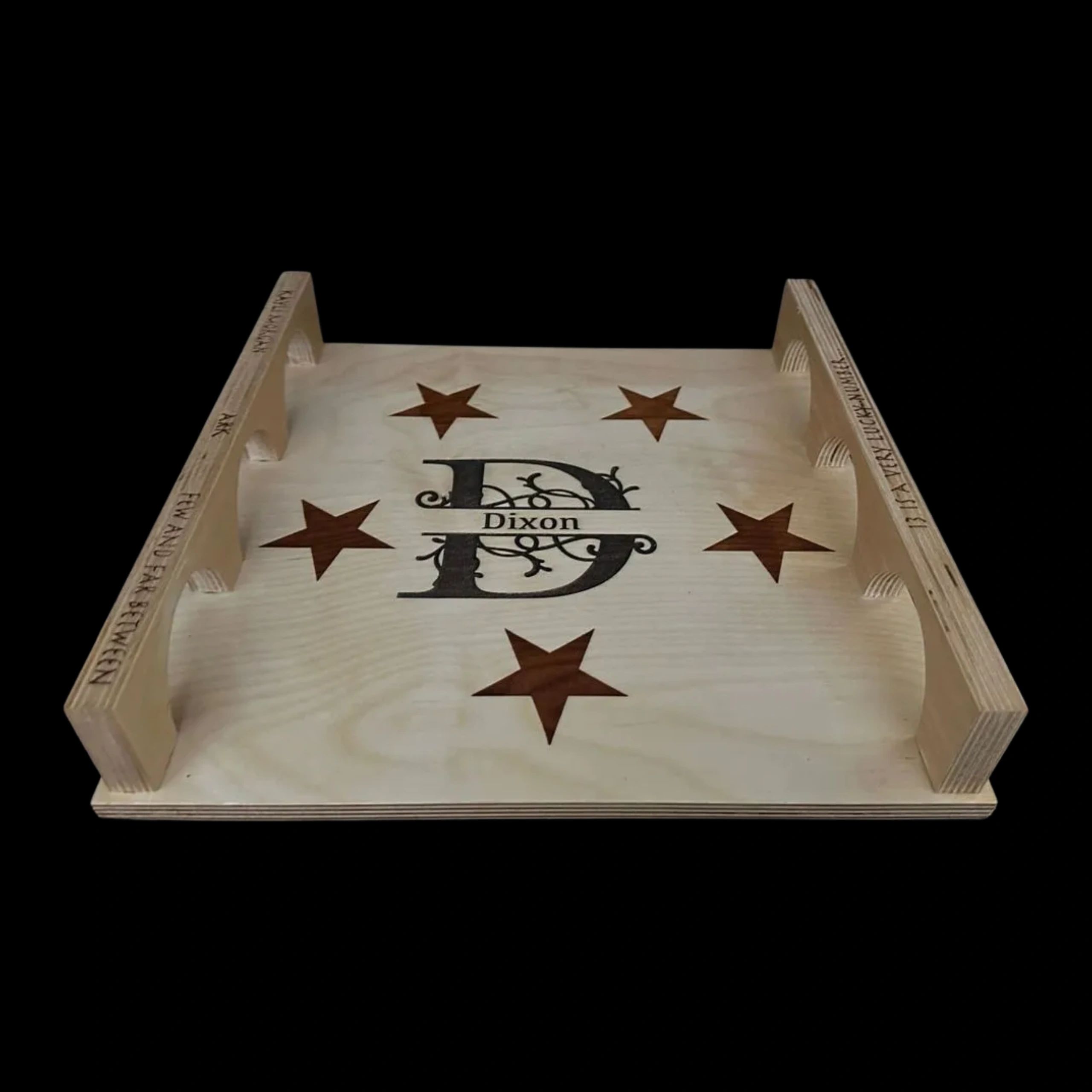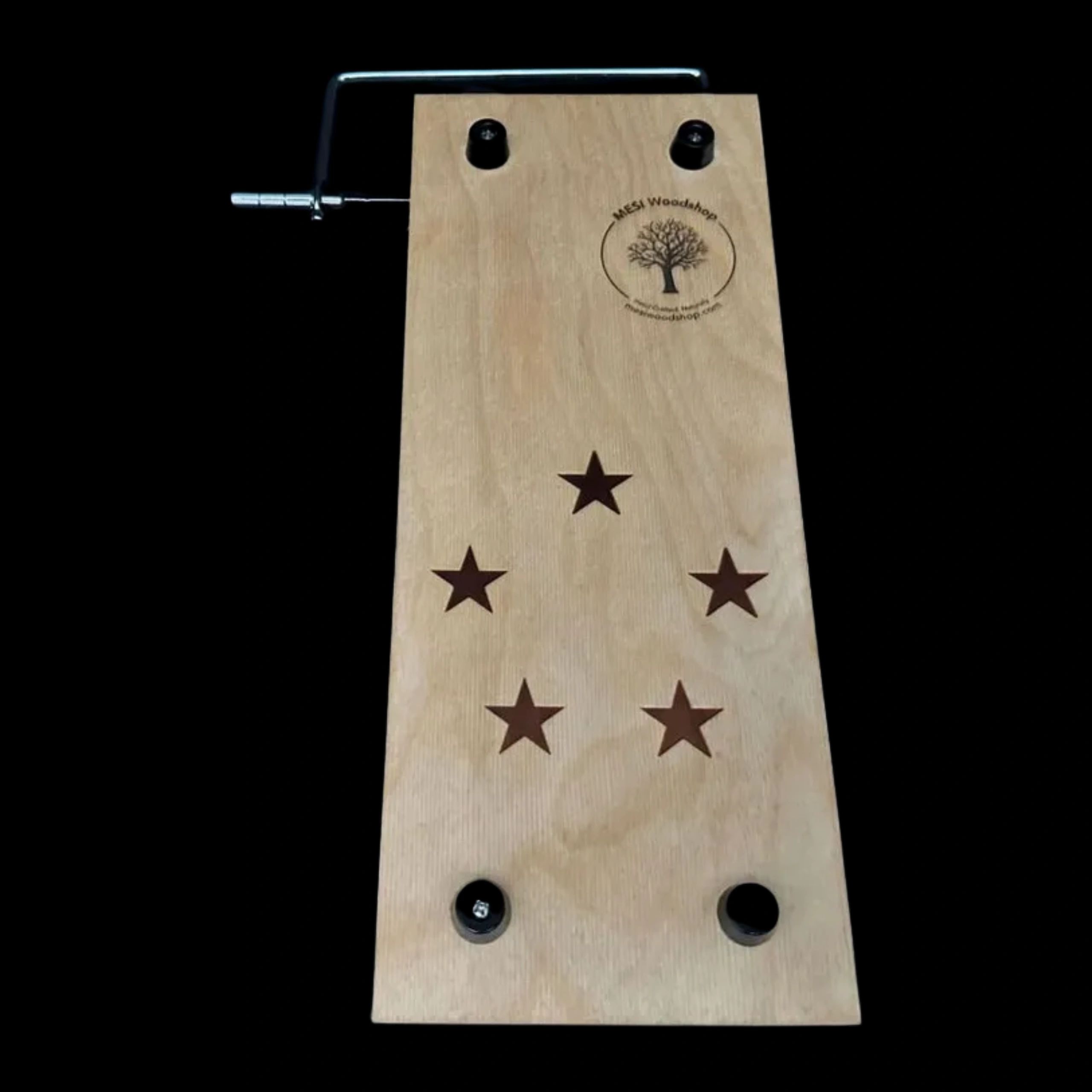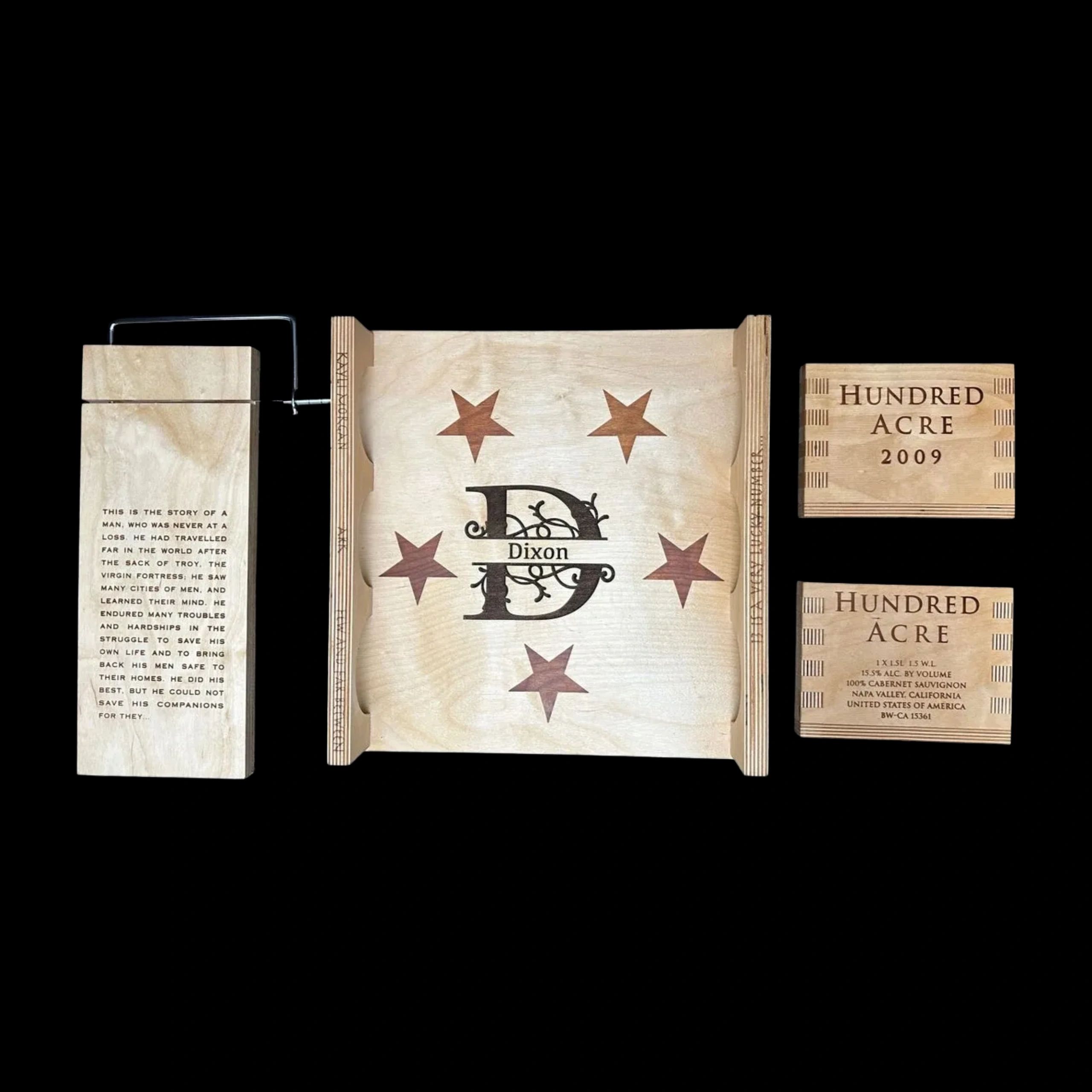 This hardwood serving tray, trivets and cheese slicer have been crafted to appeal to be both functionally and ascetically beautiful from California wine crates. These items were commissioned from wine shipping crates which have otherwise been sent to the landfill.