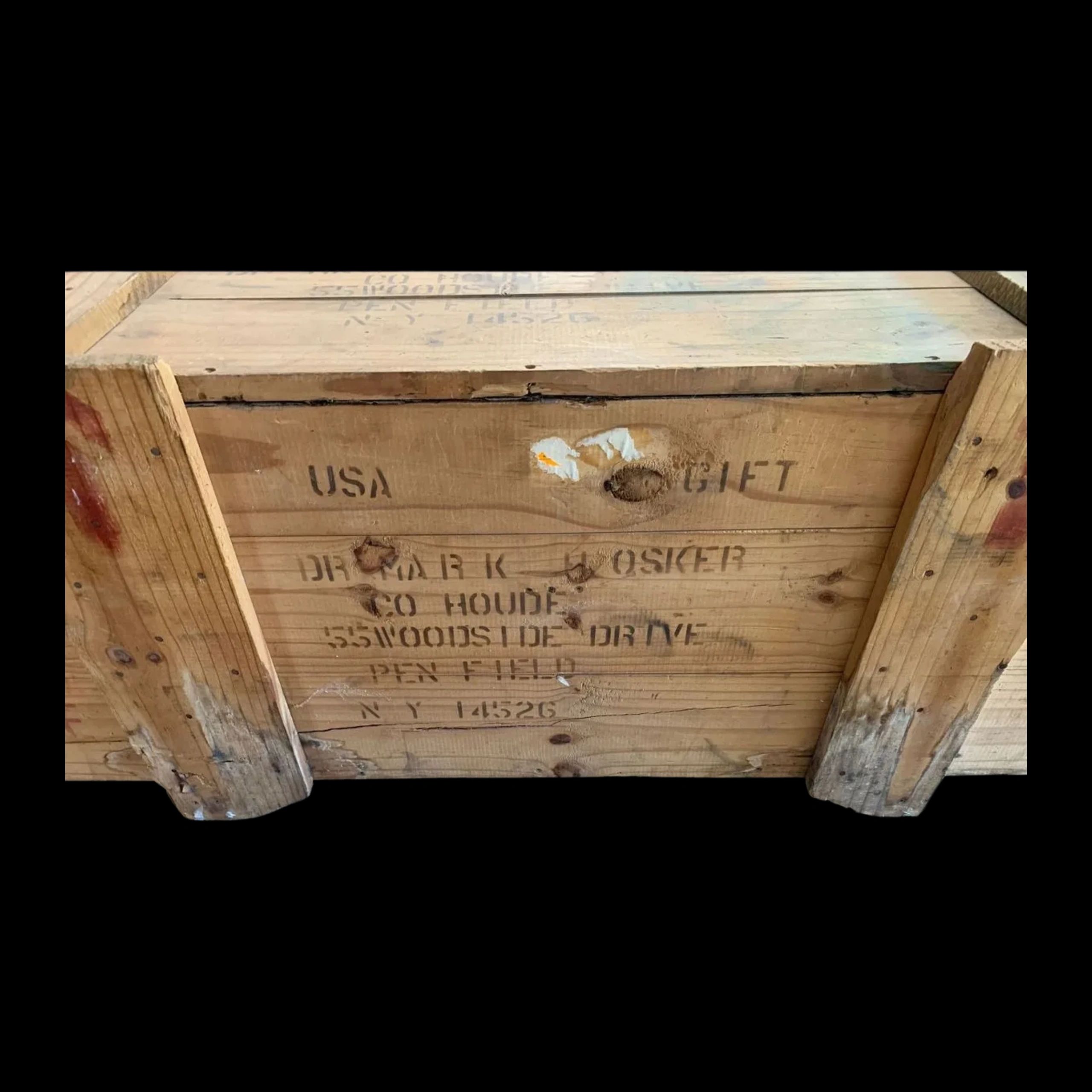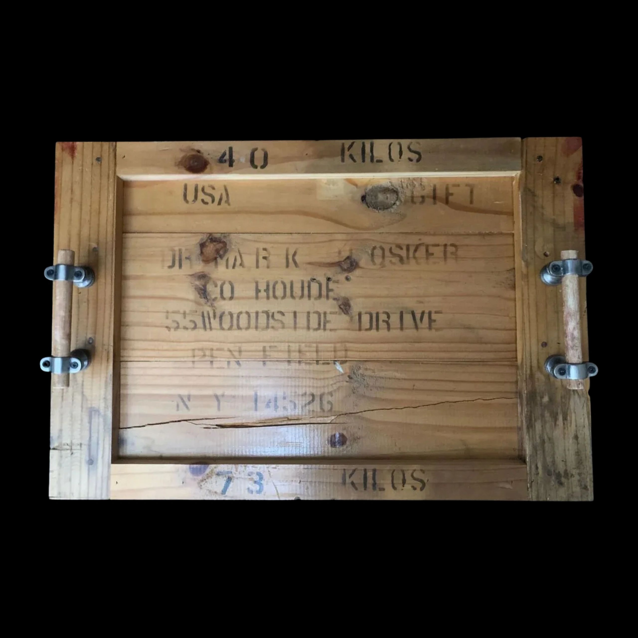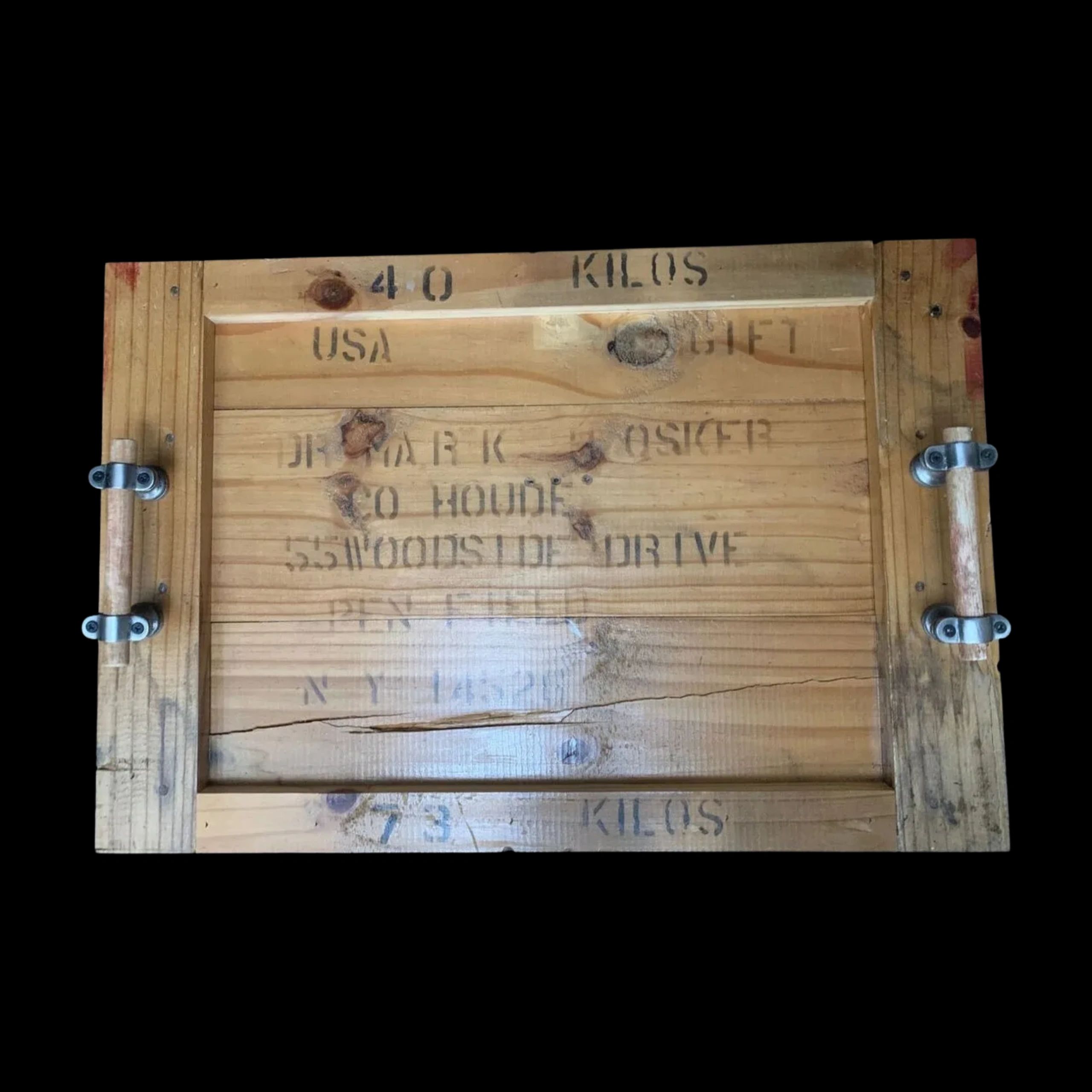 This hardwood serving tray is hand crafted to meticulous detail and one to be proud to use. This serving tray was hand crafted from a vintage shipping crate over 50 years old. Attached to the top are 2 classic dowel style handles which match the original shipping container wood. Also attached on the bottom are 4 non-slip rubber feet pads attached to the base for added functionality.